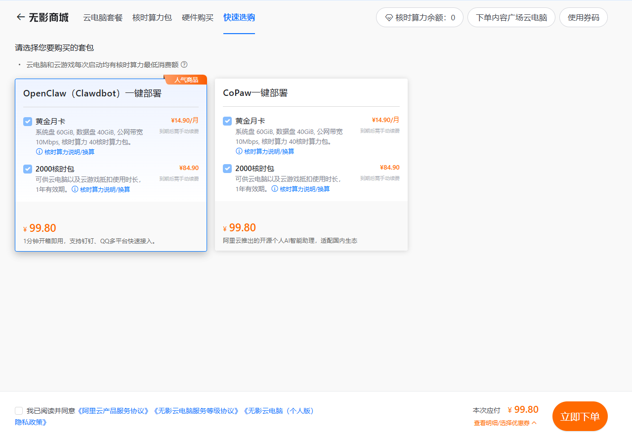 云电脑提供了开箱即用的 OpenClaw 预装环境,省去本地配置的复杂性。