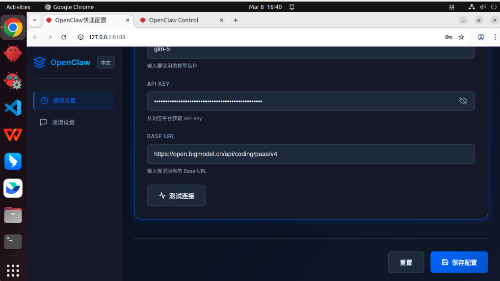 点击"测试连接"验证配置有效性