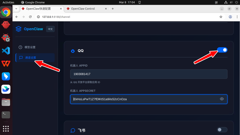 OpenClaw 支持多种通讯渠道,这里以 QQ 机器人为例,最近QQbot升级了,配置起来比飞书和企微更简单