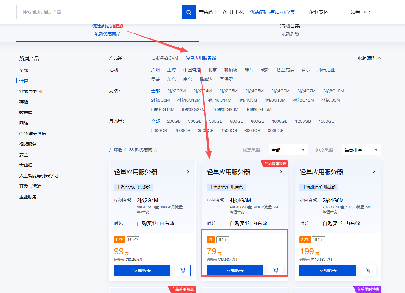 - 购买入口:腾讯云轻量活动页(只有这个渠道有,我找了很久才发现这个入口)。