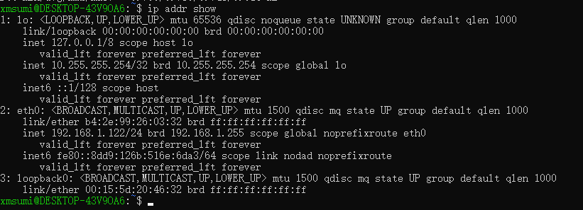 进入 WSL 后,运行 ip addr show,若配置成功,你将看到与 Windows 宿主机同网段的 IP 地址。