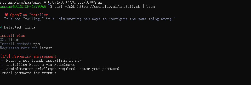 curl -fsSL https://openclaw.ai/install.sh | bash