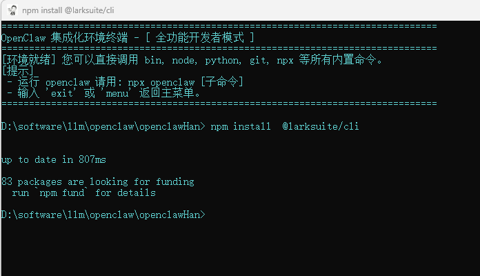 npm install -g @larksuite/cli