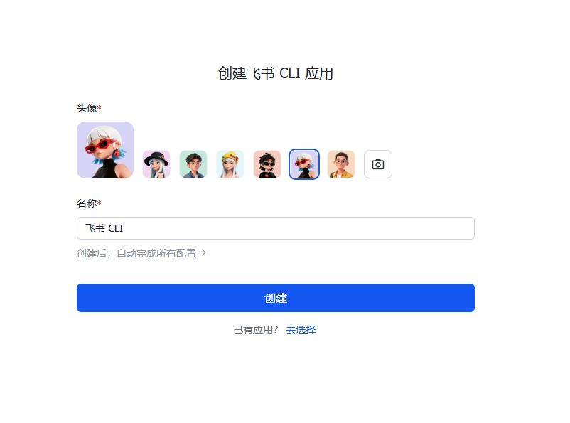 点击「创建」按钮,创建一个新的飞书应用