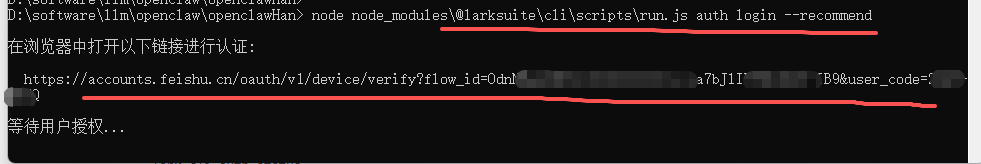 系统会生成一个飞书授权链接,按以下步骤操作: